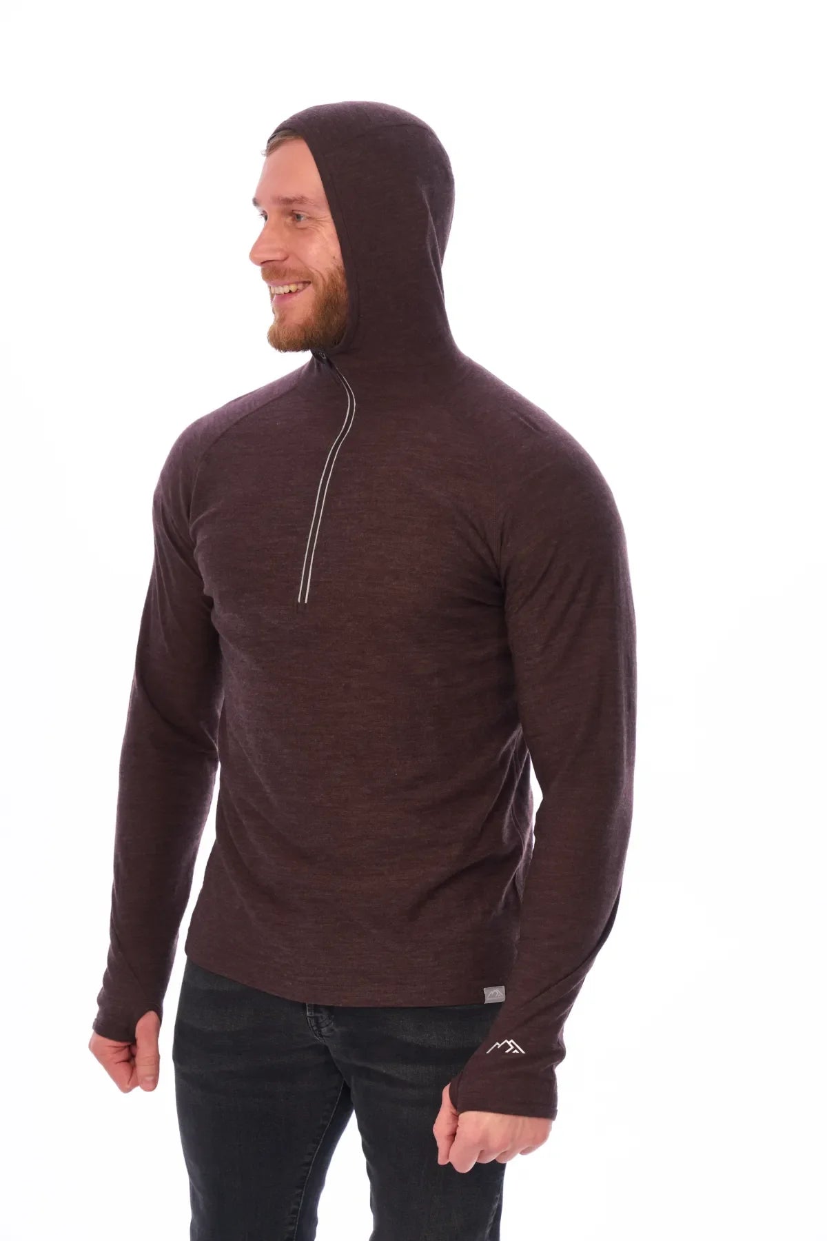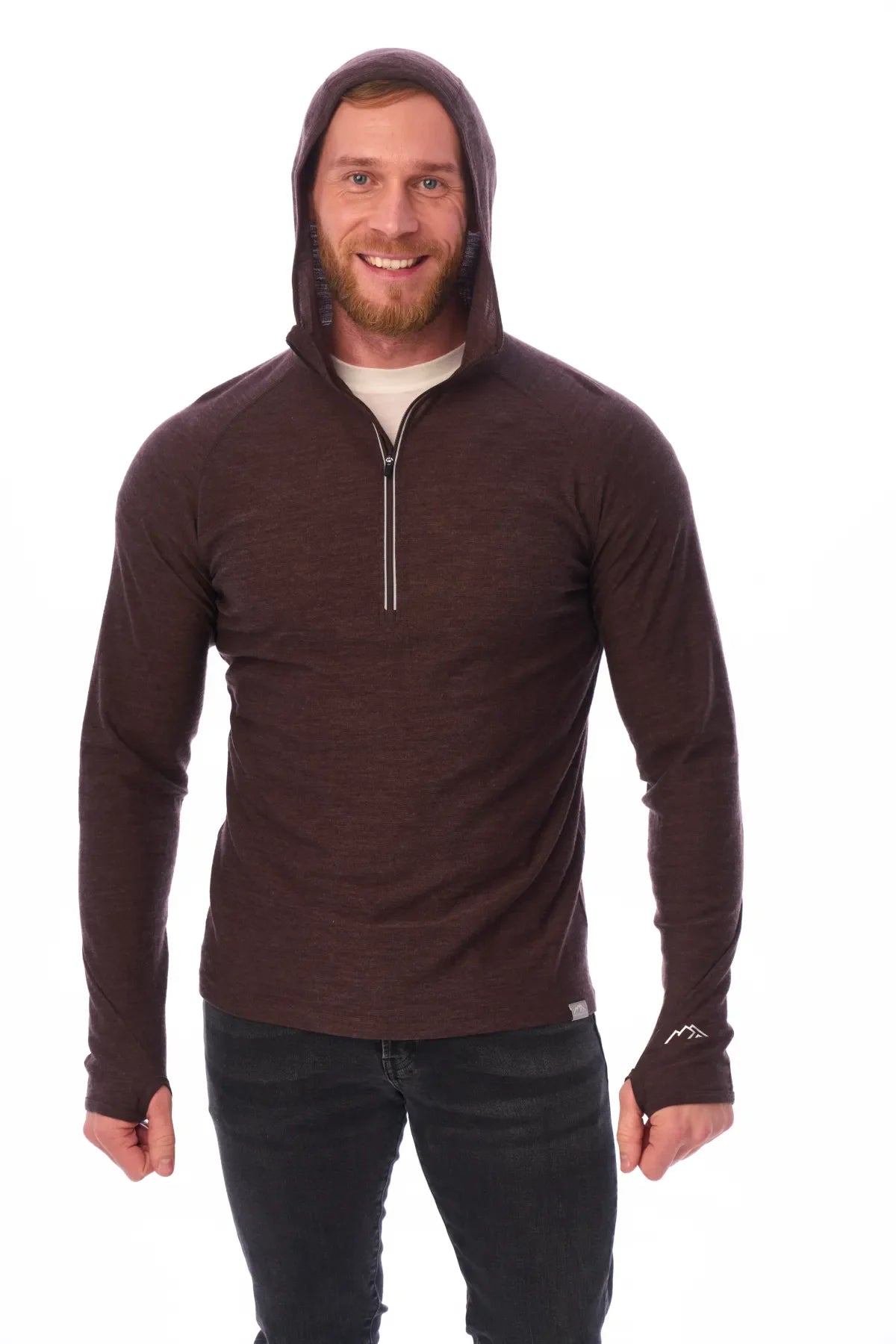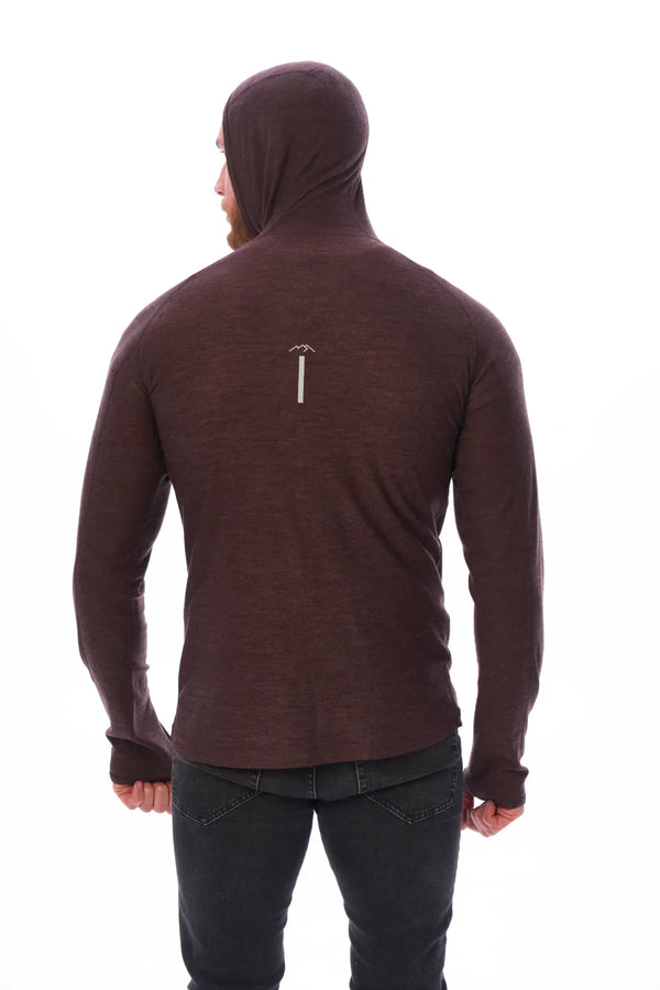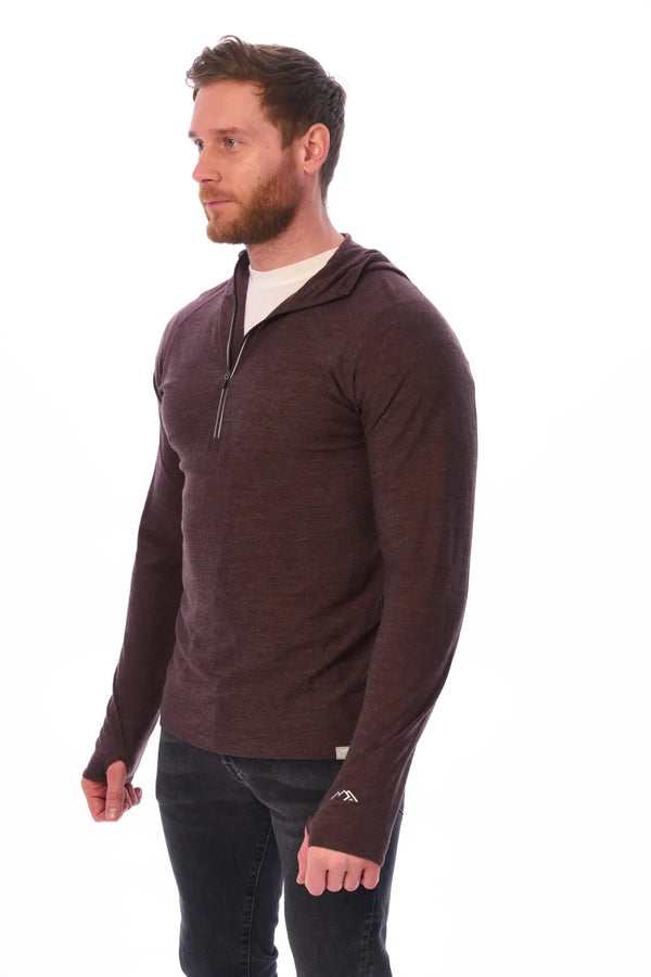 Herren-Kapuzenpullover aus Merinowolle mit halbem Reißverschluss, 190 Schokolade