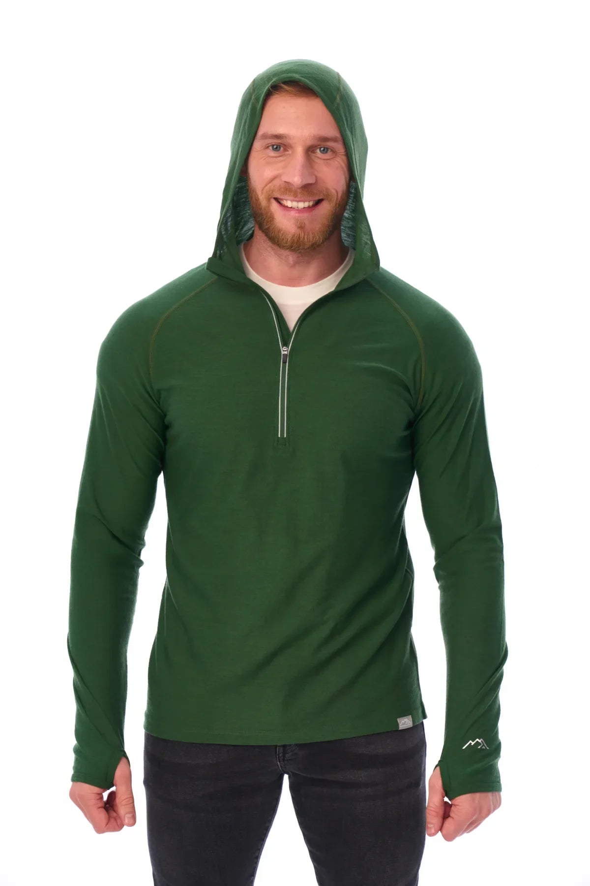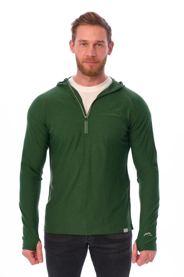 Entdecken Sie die perfekte Mischung aus Wärme und Stil mit unserem Kapuzenpullover aus Merinowolle mit halbem Reißverschluss für Herren.