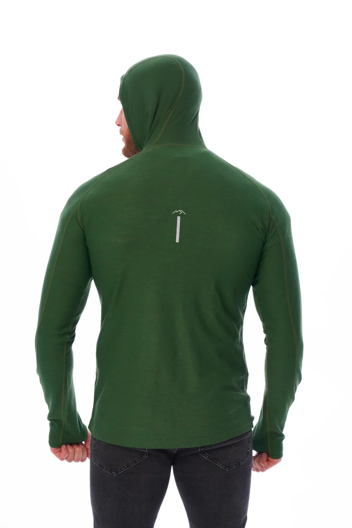 Herren-Kapuzenpullover aus Merinowolle mit halbem Reißverschluss 190 Oliv