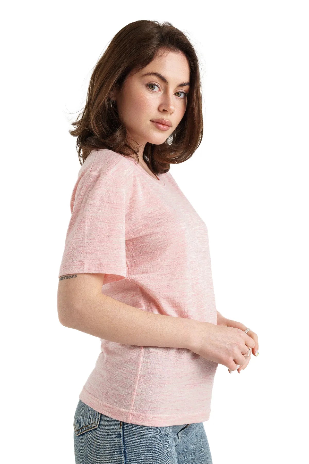 Tauchen Sie ein in die schicke Eleganz des leichten Merino-T-Shirts für Damen in Heather Pink.