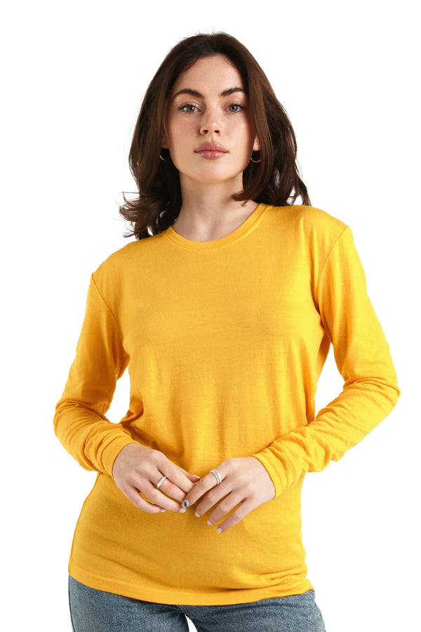 Erweitern Sie Ihre Garderobe mit dem Luxus und der Vielseitigkeit eines Langarmshirts aus Merinowolle.