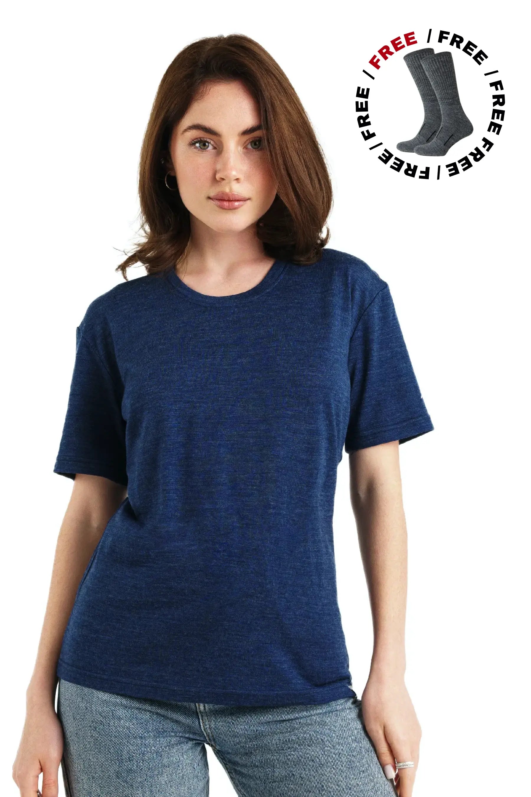 Diese T-Shirts bestehen aus 100 % Merinowolle und sind für das ganzjährige Tragen konzipiert. Sie bieten eine natürliche Temperaturregulierung und Feuchtigkeitsregulierung.
