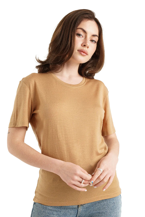 Merino T-Shirt 165 Tan für Damen | Rundhals