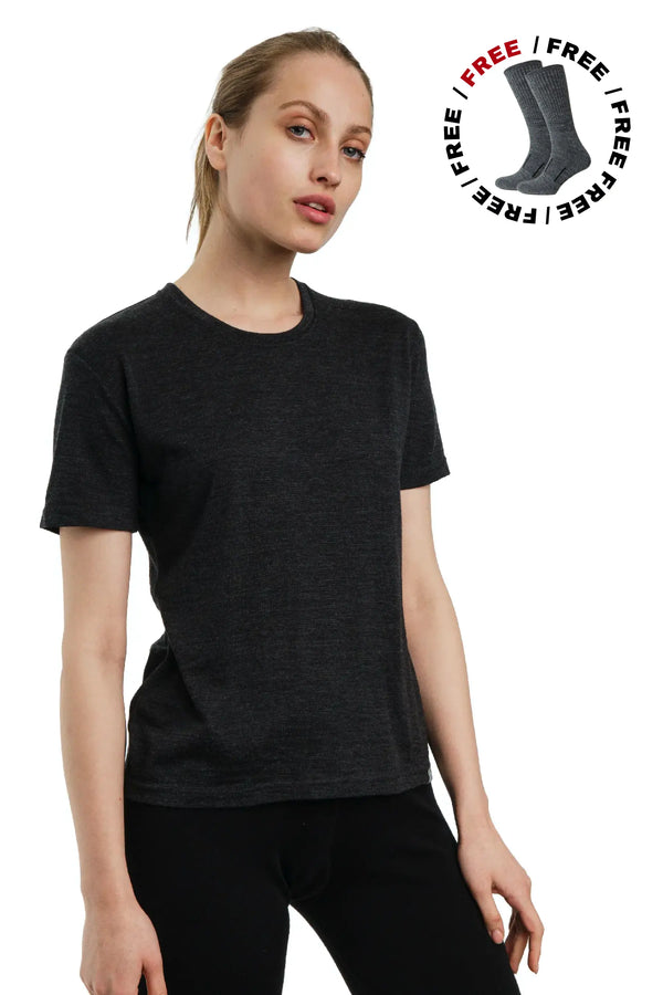 Merino-T-Shirt für Damen – Anthrazit | Rundhalsausschnitt (+Socken)