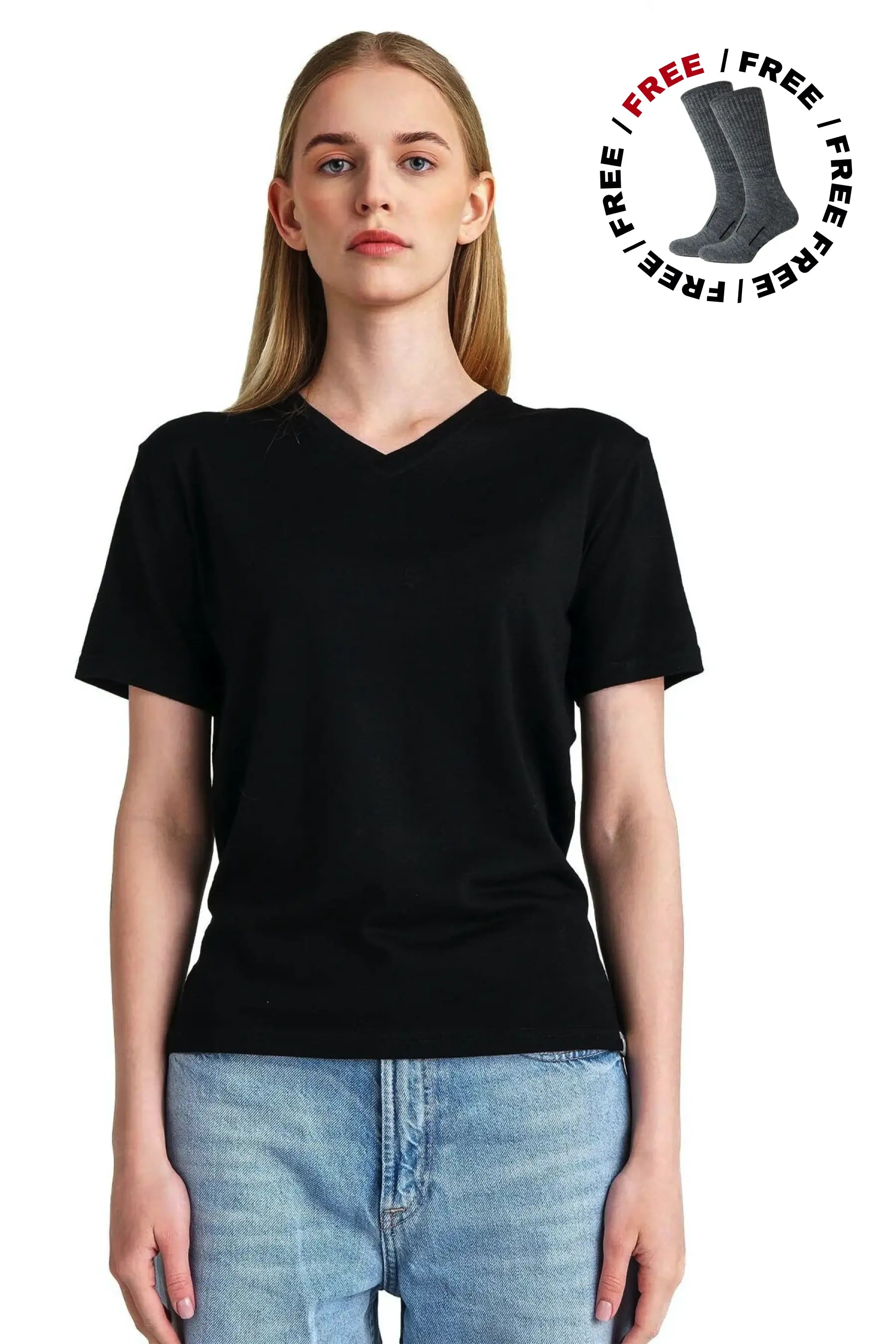 Damen Merino T-Shirt 165 Rich Black | V-Ausschnitt (+Socken)