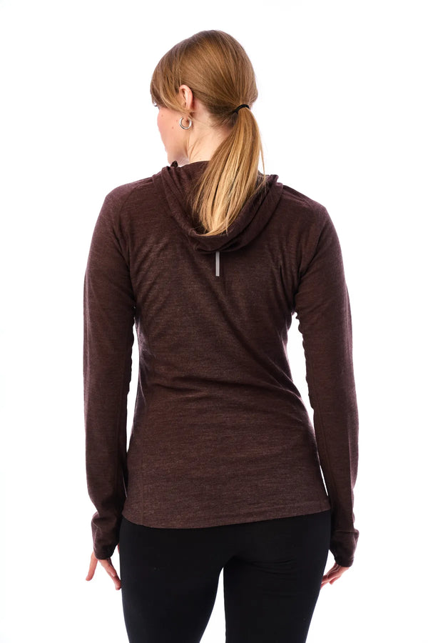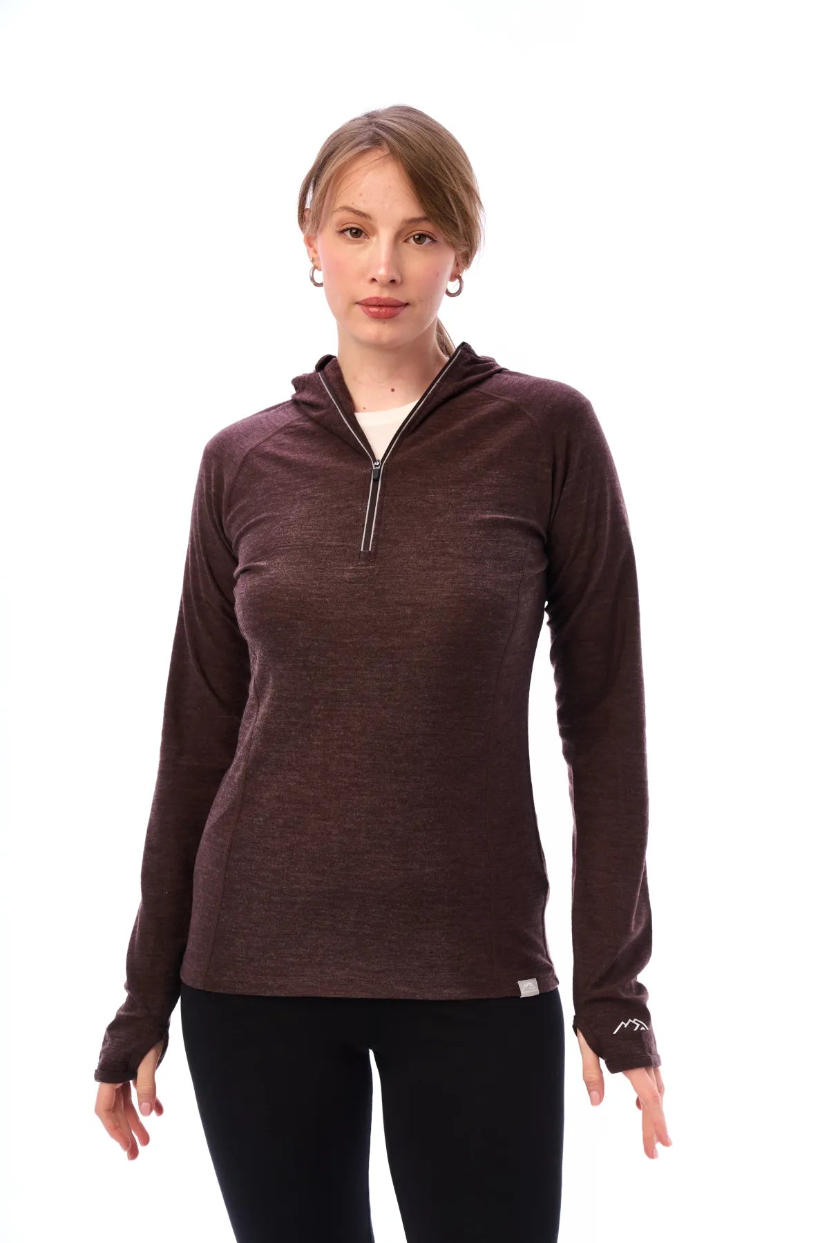 Damen-Kapuzenpullover aus Merinowolle mit halbem Reißverschluss 190 Schokolade