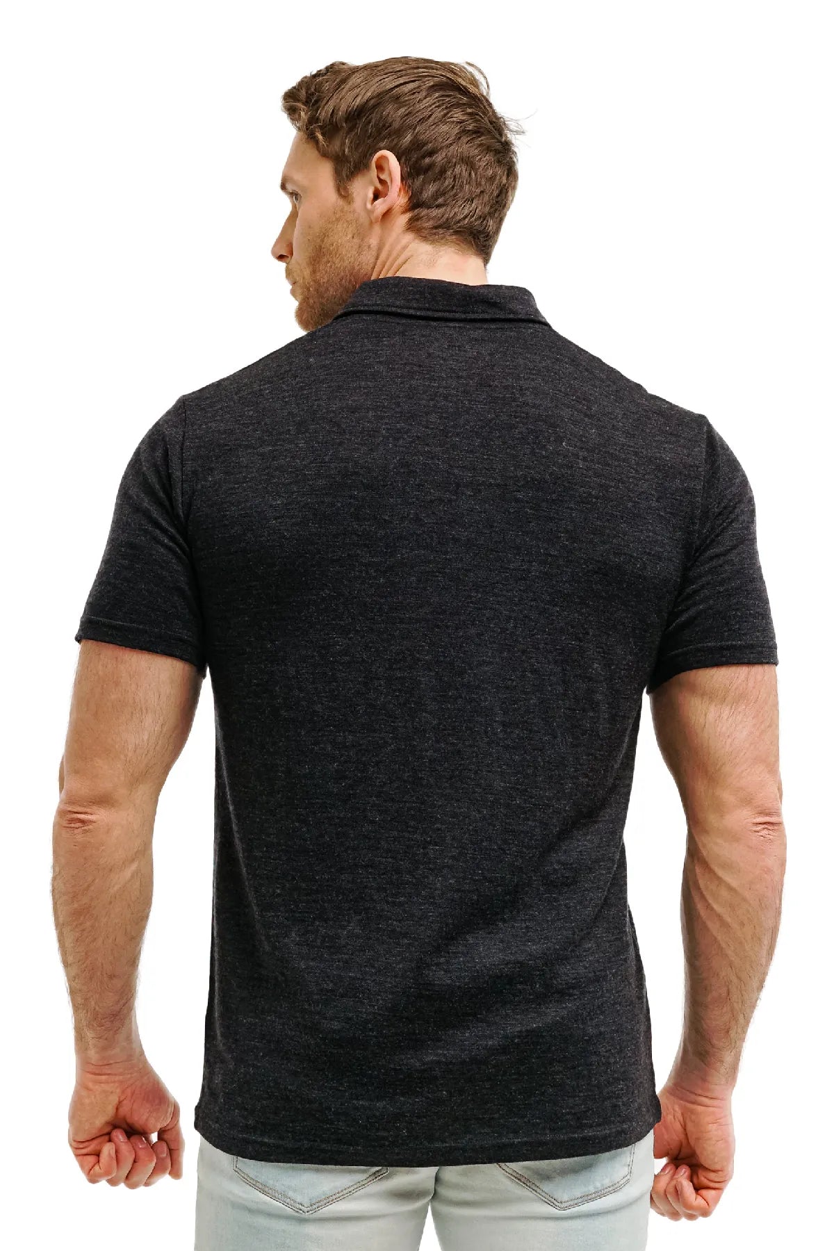Merino-Poloshirt für Herren - Schwarzmeliert