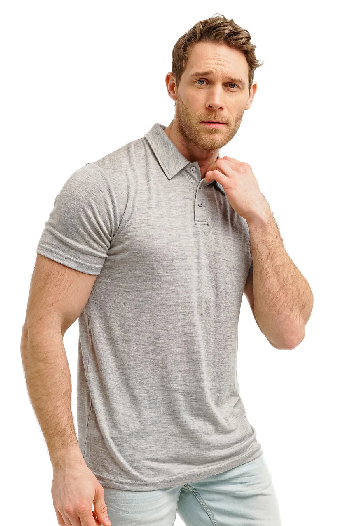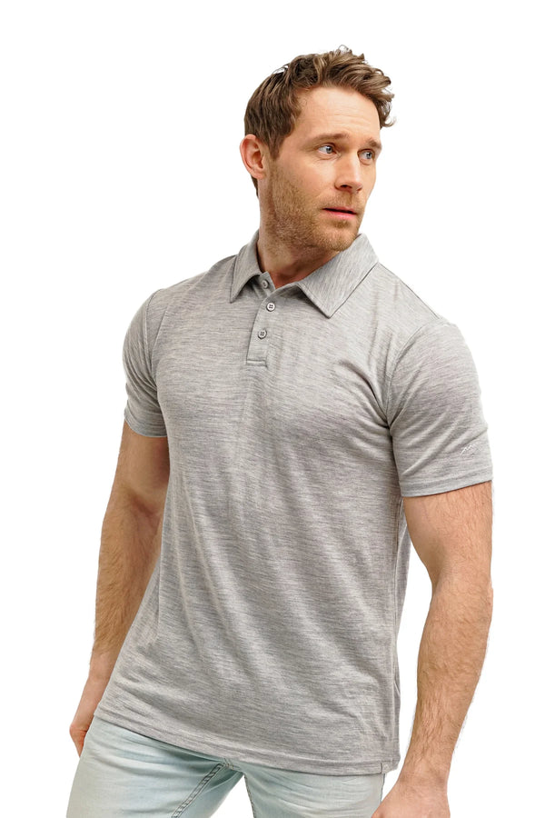 Lernen Sie den Inbegriff von Klasse kennen mit dem Merino-Poloshirt für Herren in meliertem Grau.