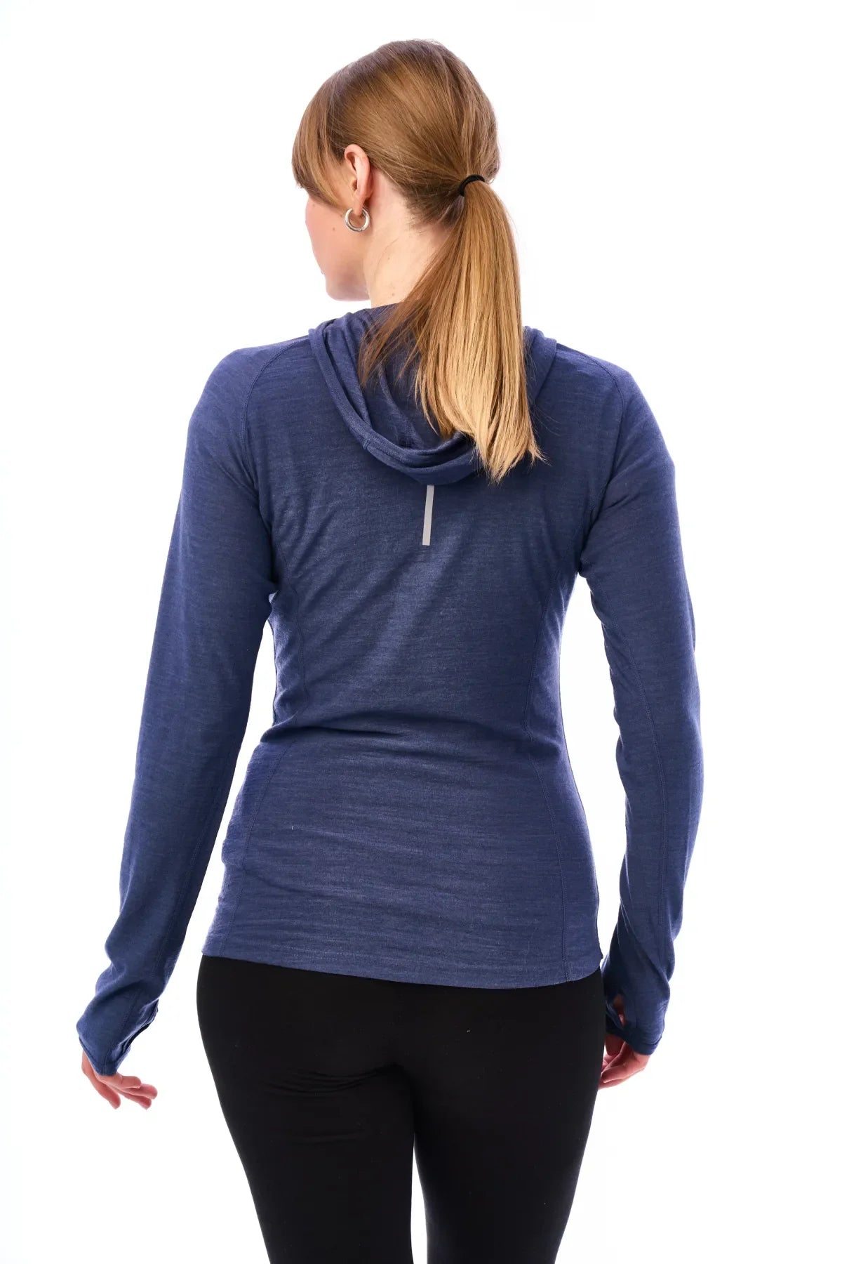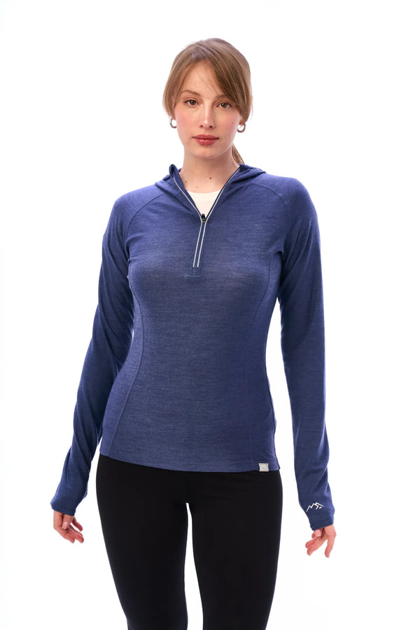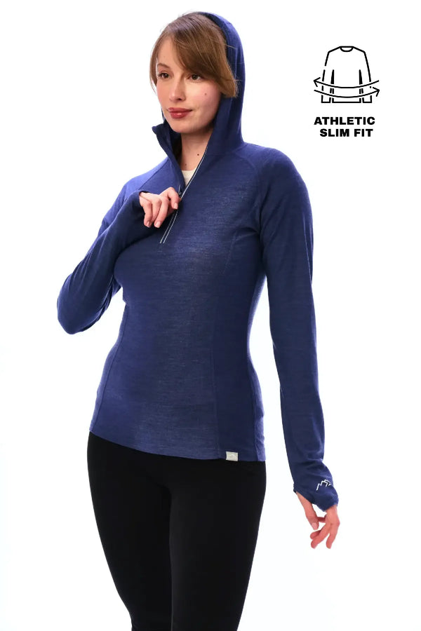 Damen-Kapuzenpullover aus Merinowolle mit halbem Reißverschluss 190 Windsor Blue
