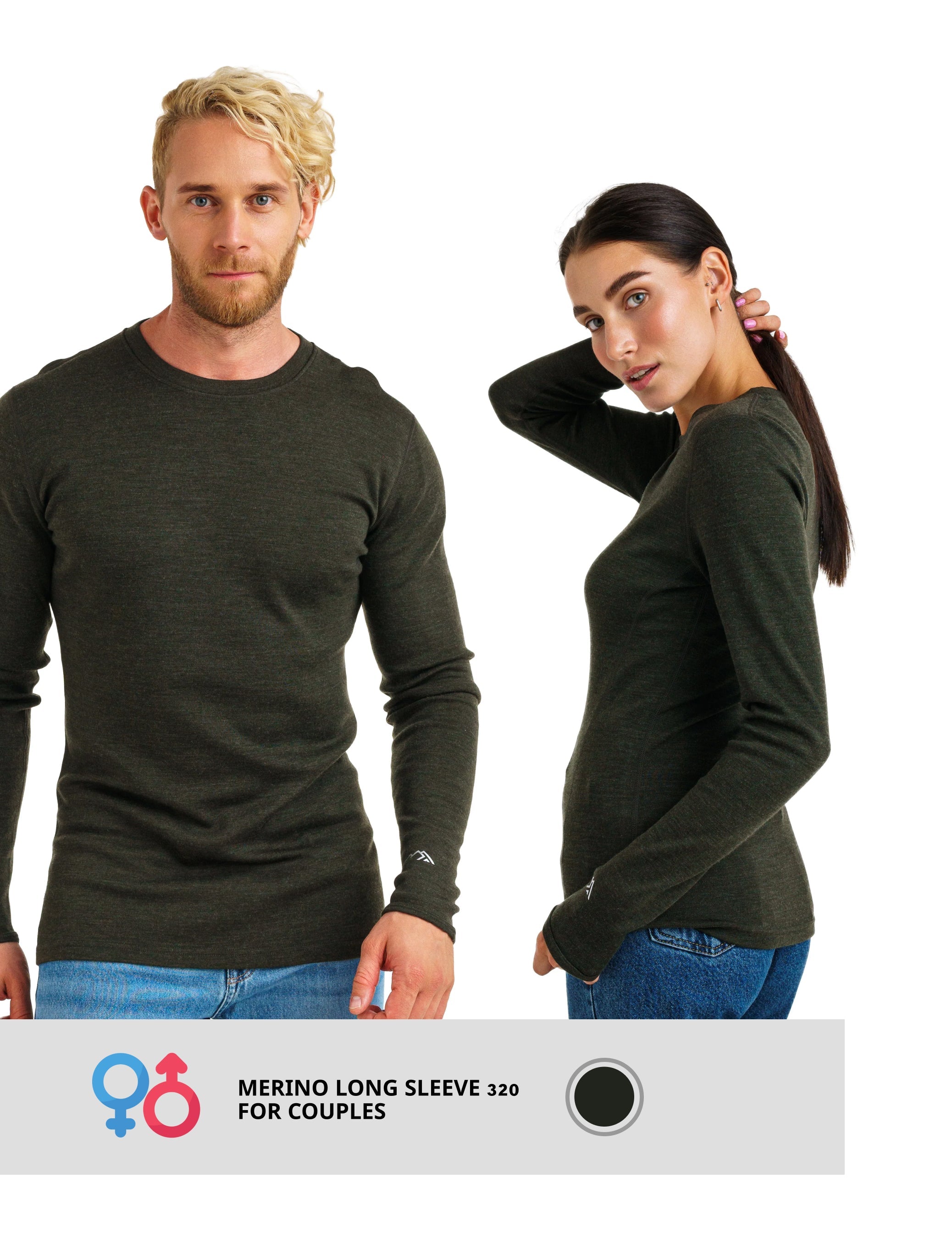 Merino Langarmshirt 320 für Paare in Armeegrün