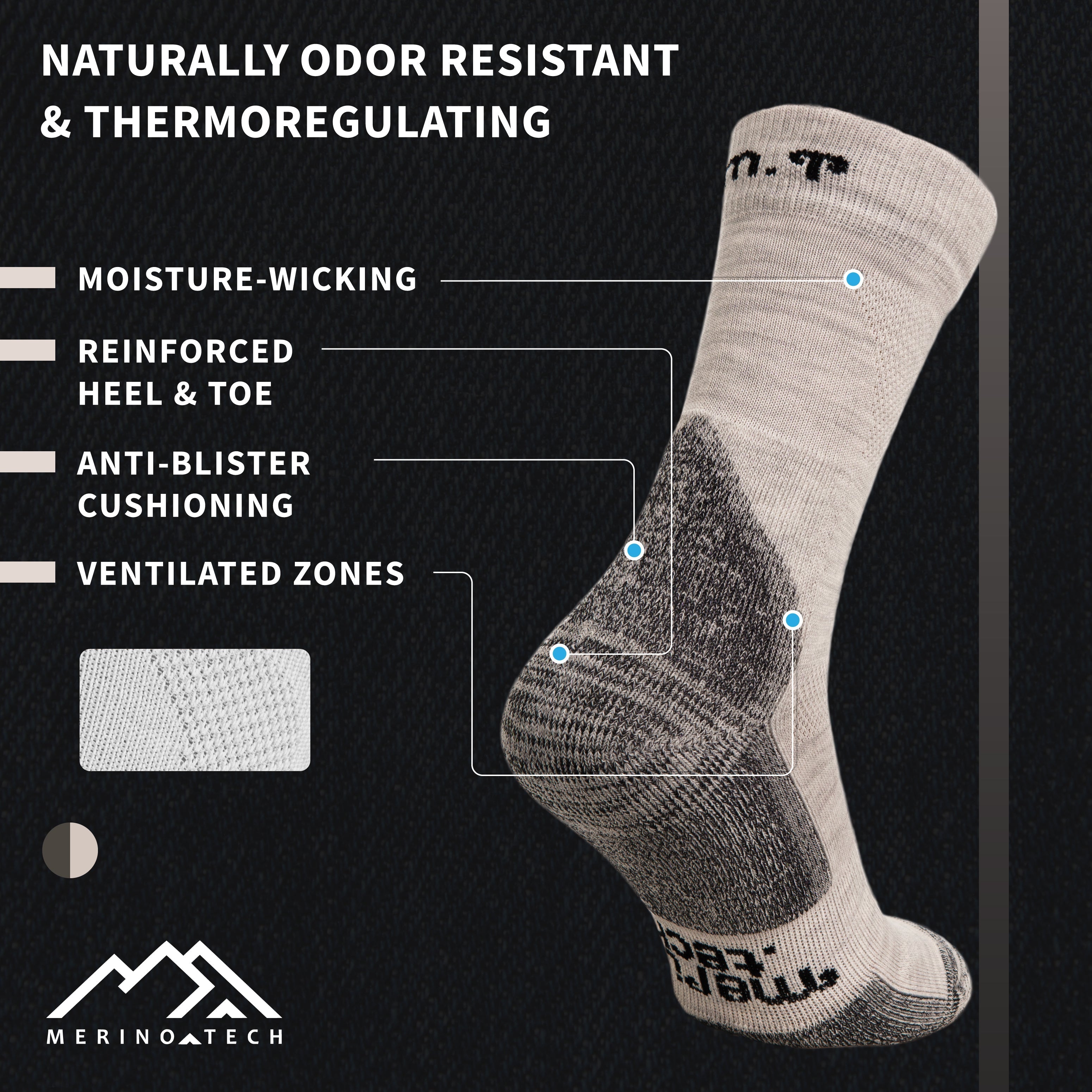 Die natürlichen Eigenschaften der Merinowolle sorgen für Feuchtigkeitstransport und Geruchskontrolle und halten Ihre Füße frisch und trocken.