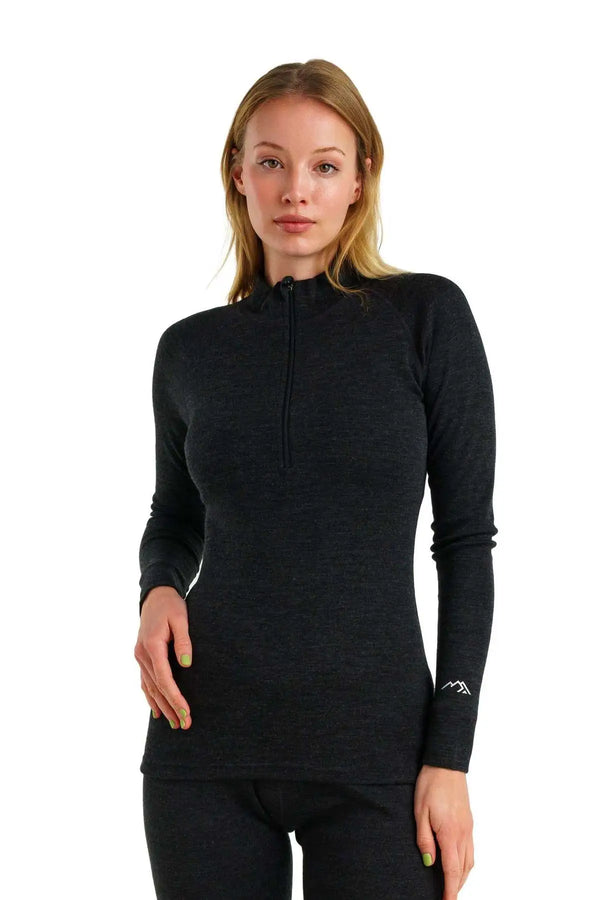 Merino Half Zip Langarmshirt 320 für Damen Anthrazit