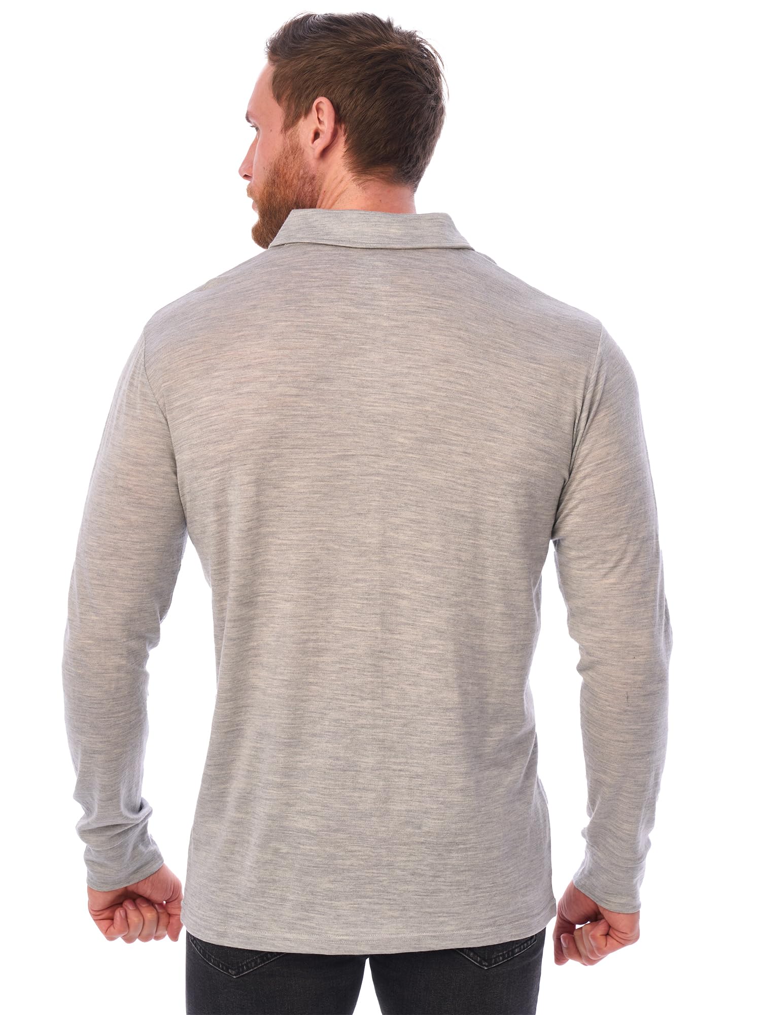 Men's Merino Wool Long Sleeve Polo Heather Grey