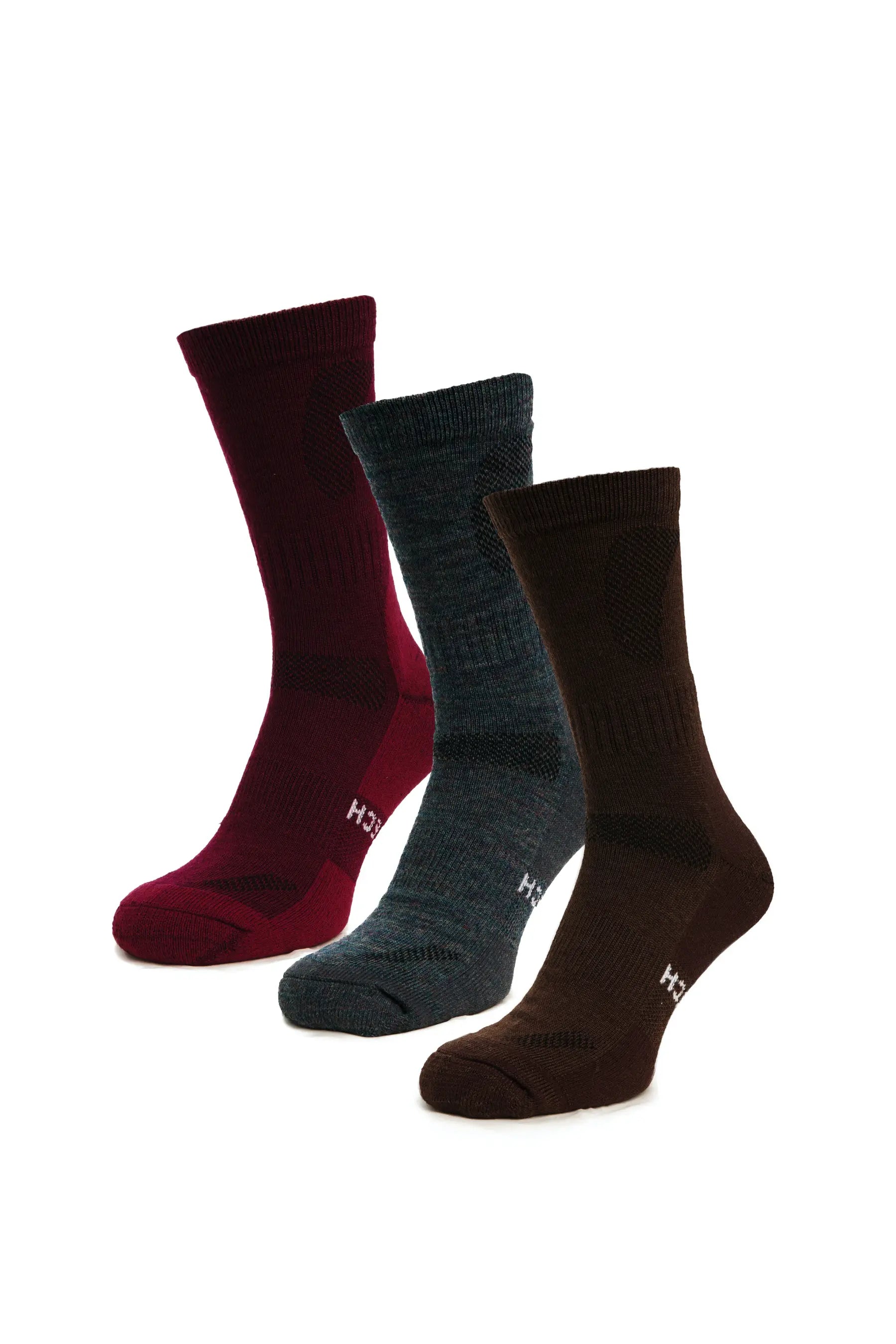 Merino Wool Hiking Socks - Multicolor: Brown, Dark Green, Red
